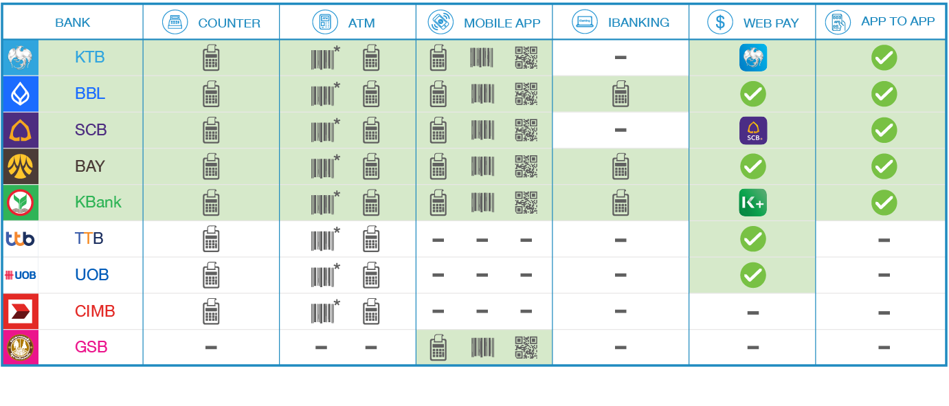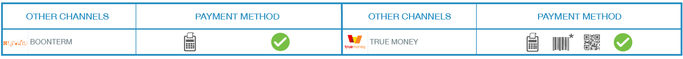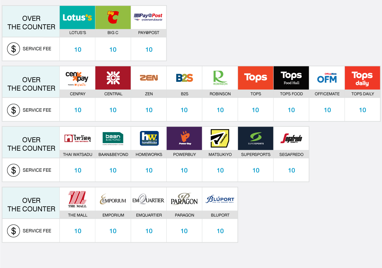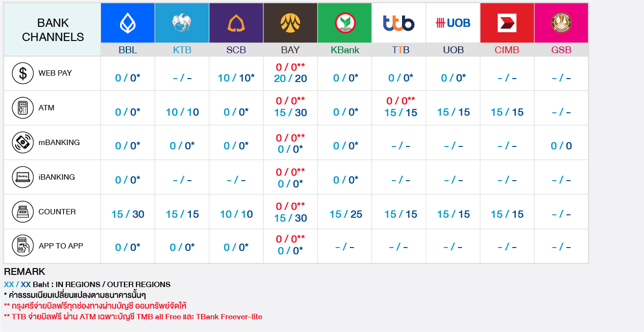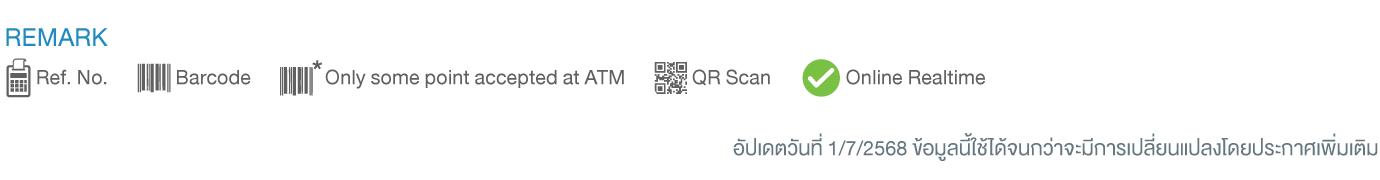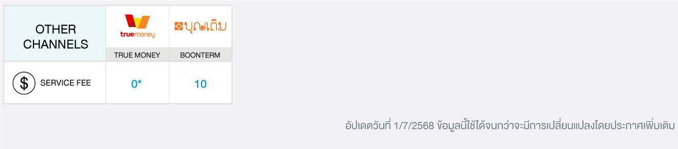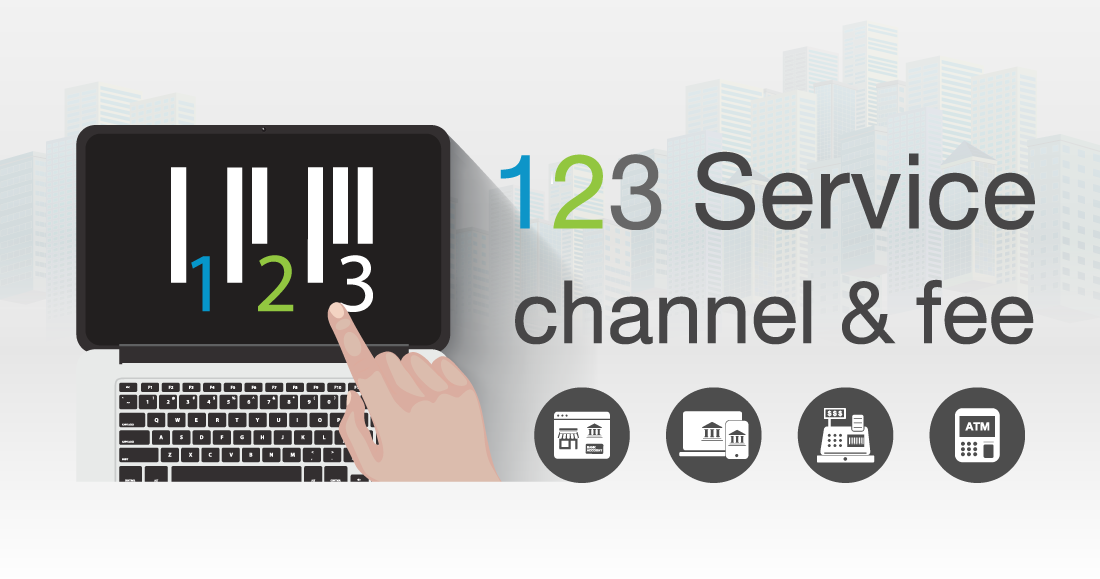 บริการ 123 เป็นบริการที่ช่วยเพิ่มช่องทางการชำระเงินด้วยเงินสด ผ่านจุดรับบริการชั้นนำ และช่องทางต่างๆของธนาคาร โดยมีช่องทางรับชำระ และ ค่าธรรมเนียม ดังนี้