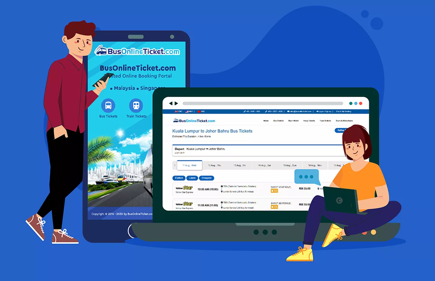 Bus Online Ticket (BOT) pulls together several major bus operators such as Golden Coach Express, KKKL Travel & Tours Pte Ltd, and Starmart Express under one website. It effectively serves as a one-stop platform for travelers to choose their preferred bus operators with ease.