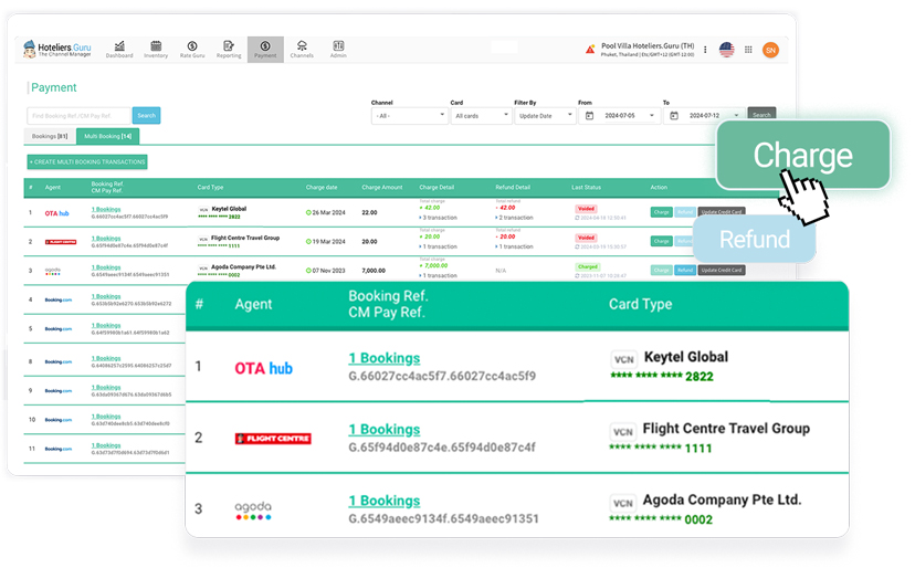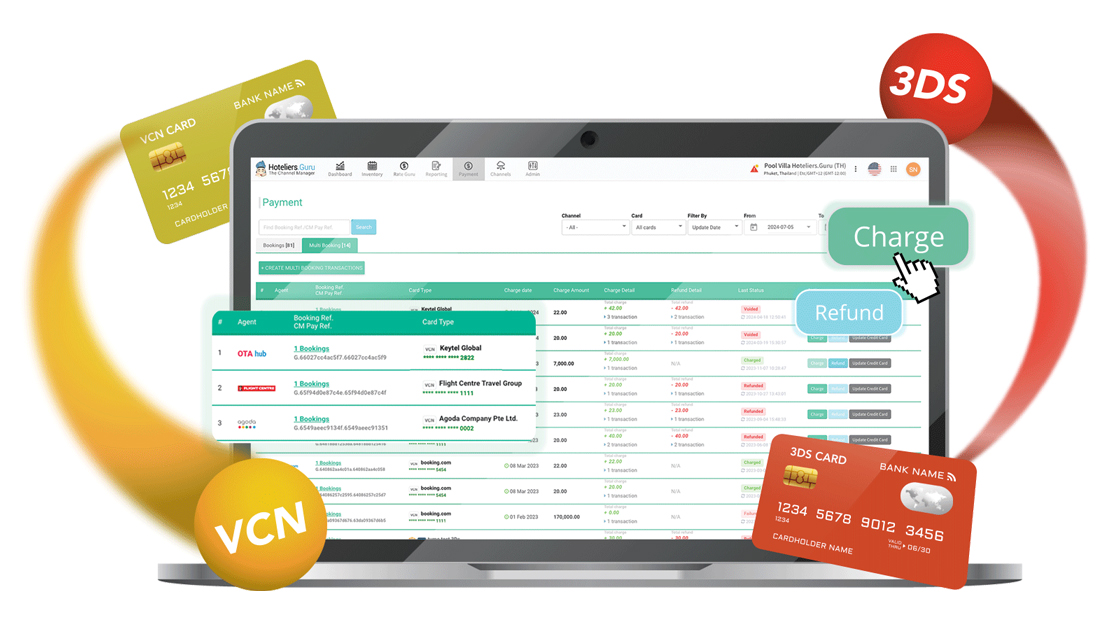 - Channel Manager Payment (CM Pay): A payment processing system that empowers hotels to accept payments for both direct bookings and bookings made via major OTAs, including Agoda, Trip.com, Expedia, and Goibibo. CM Pay supports both virtual credit card (VCC) payments and many other payment methods.